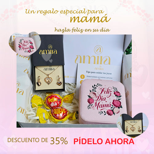 Set Corazón + inicial con Doble baño de oro 18k+joyero personalizado de🎁